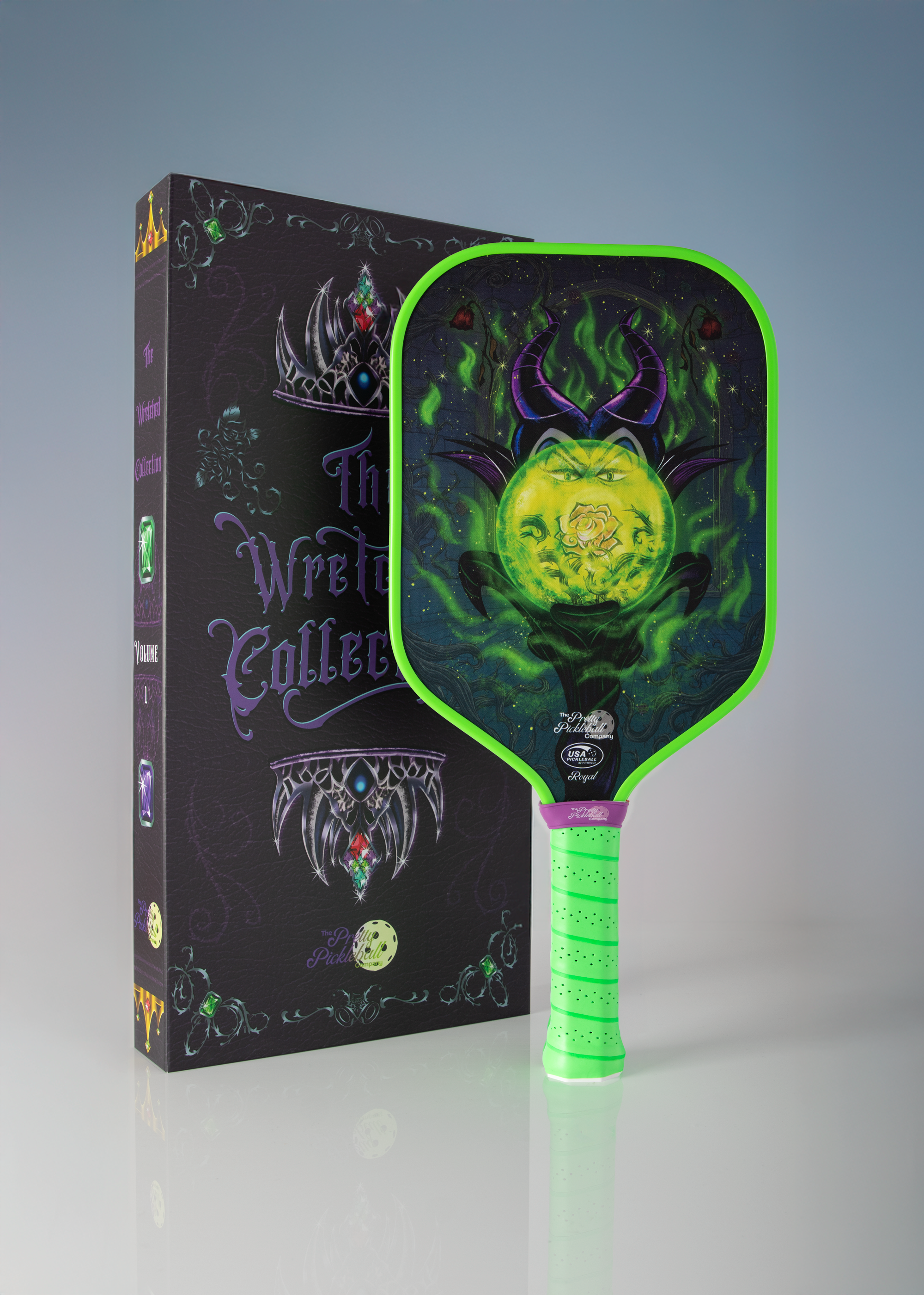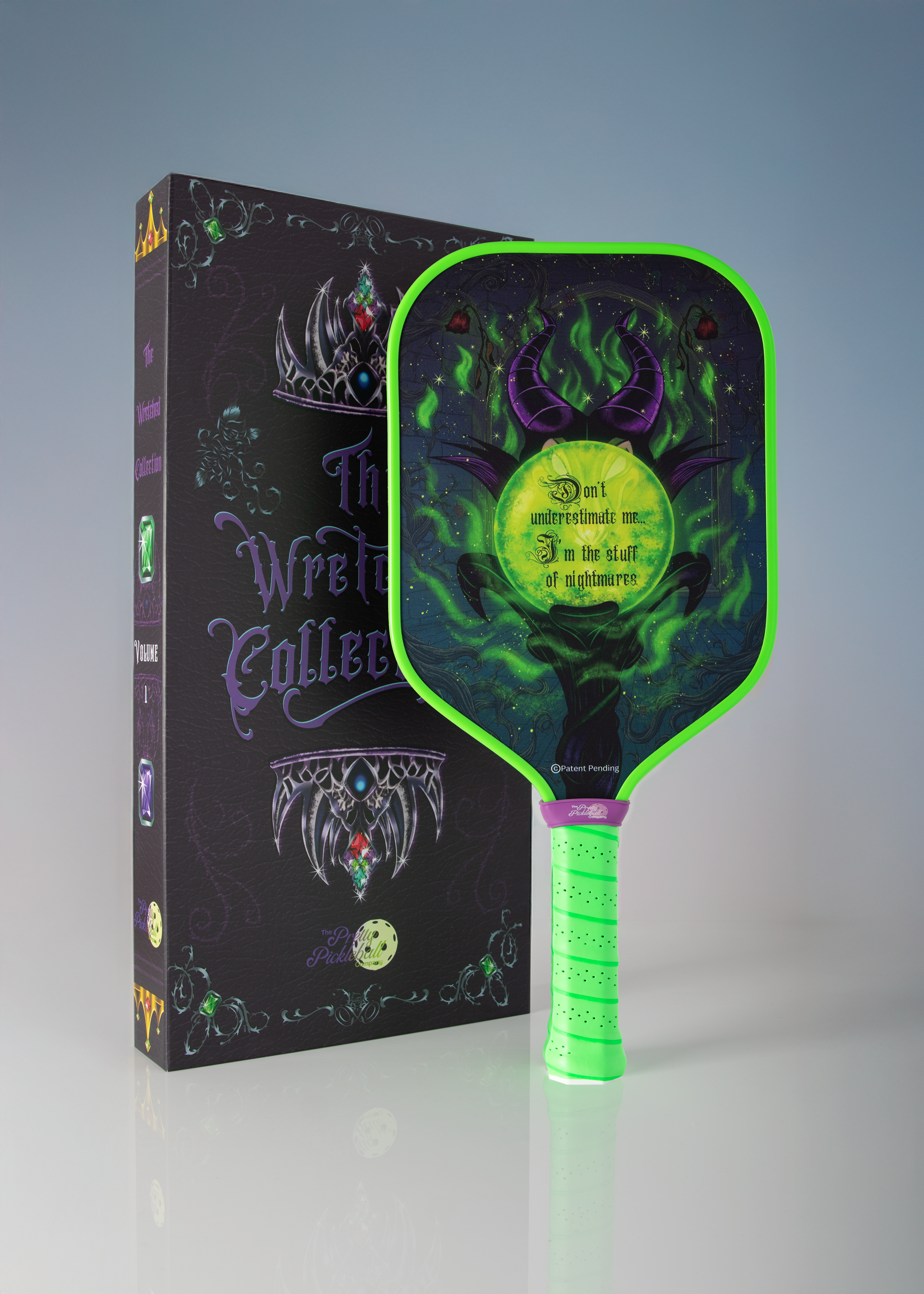 The Wretched Collection is where villains take the spotlight. Inspired by the cunning, power, and attitude of the most notorious fairytale baddies, each paddle is a statement piece designed to help you play fiercely and unapologetically. With pro-level T700 carbon fiber performance and dramatic, original artwork, this collection brings dark elegance and wicked fun to every match—perfect for players who love to rule the court with a little edge.